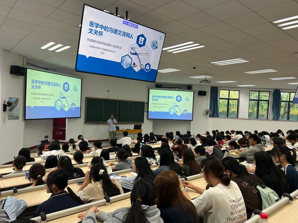 活动第一环节聚焦“医院医患关系处理与患者沟通技巧”,特邀成都医学院第一附属医院神经外科张列主任医师担任主讲。张医生以“倾听比说教更重要”为核心观点,结合丰富临床案例展开深入讲解。通过“患者质疑检查必要性”“家属因治疗效果焦虑”等典型场景,生动演示了医护人员应如何有效回应疑虑、化解矛盾。他特别强调,护理沟通既要保持专业准确,又要体现人文关怀,一句真诚的“我理解你的担心”,往往比复杂的医学术语更能建立信任、温暖人心。