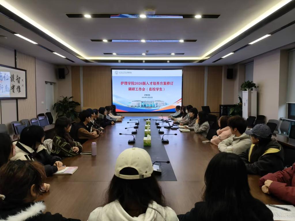 为优化2026版护理学专业人才培养方案,精准对接学生发展需求,11月25日,护理学院组织召开2026版护理学专业人才培养方案修订专题调研会。会议由副院长何春渝主持,教务科科长杨翔及各年级学生教务代表共同参会,会议采取线上线下相结合的方式进行。