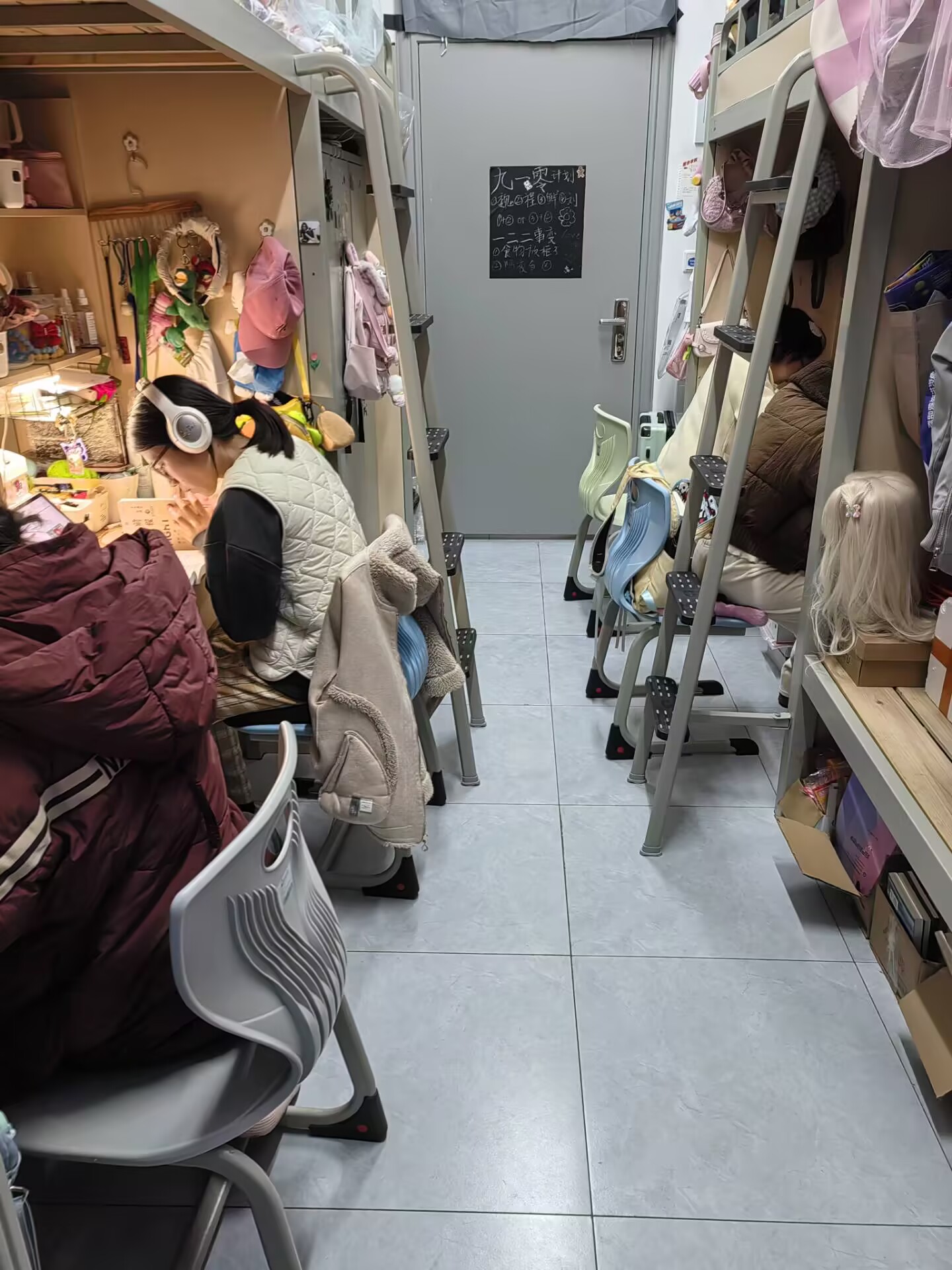 同学们齐心协力,认真清洁地面、厕所、浴室和洗漱台,擦拭门窗、桌凳、书台,做到窗明几净,尽力不放过任何卫生死角,让灰尘和垃圾一扫而空。同时,每个同学将自己的电脑、书本、衣物、生活用品等分类整理、摆放有序,并巧妙利用绿植、书法、绘画、照片等元素装点空间,展现出独特文化韵味。有的寝室还张贴了寝室卫生值日表、文明公约、学习作息安排,用便签贴进行学习生活提示,营造出浓厚的“家的氛围”。