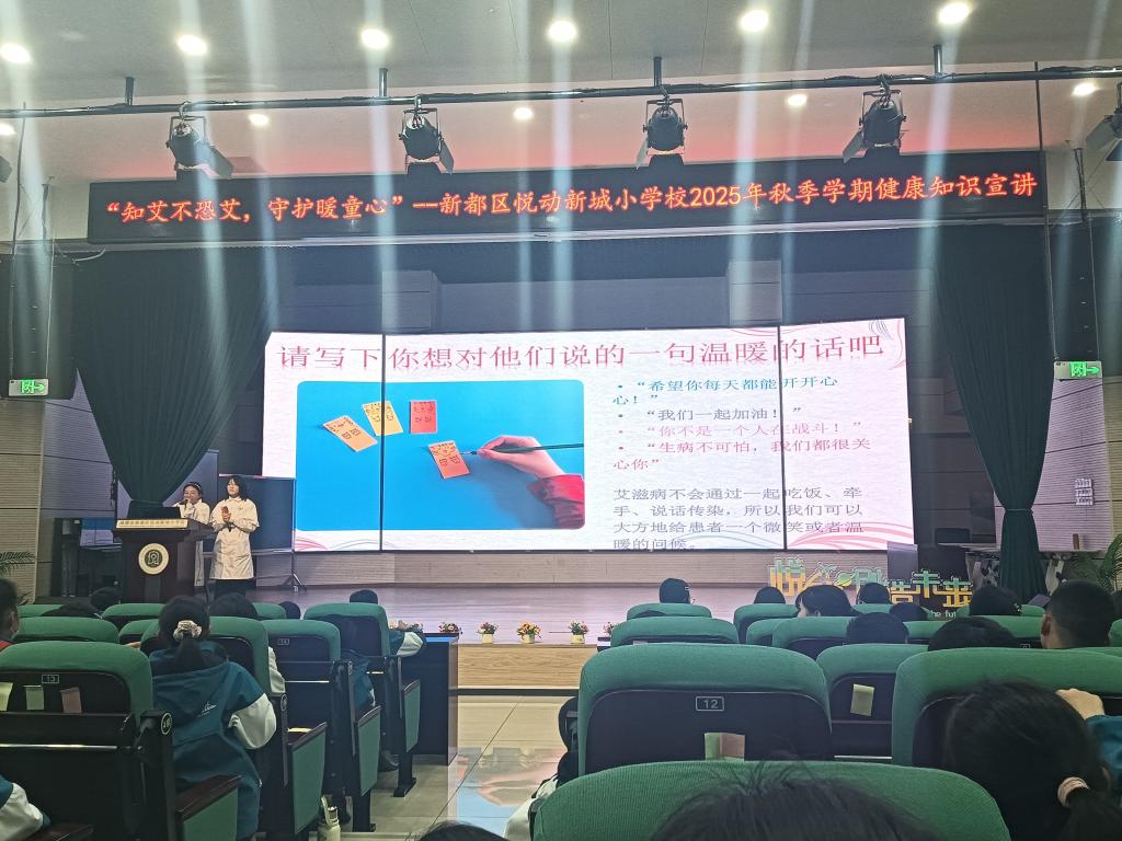 为响应2025年世界艾滋病日“社会共治,守正创新,终结艾滋”的主题,12月1日,成都医学院携手新都区石板滩社区走进悦动新城小学校,开展了“知艾不恐艾 守护暖童心”艾滋病防治科普活动。