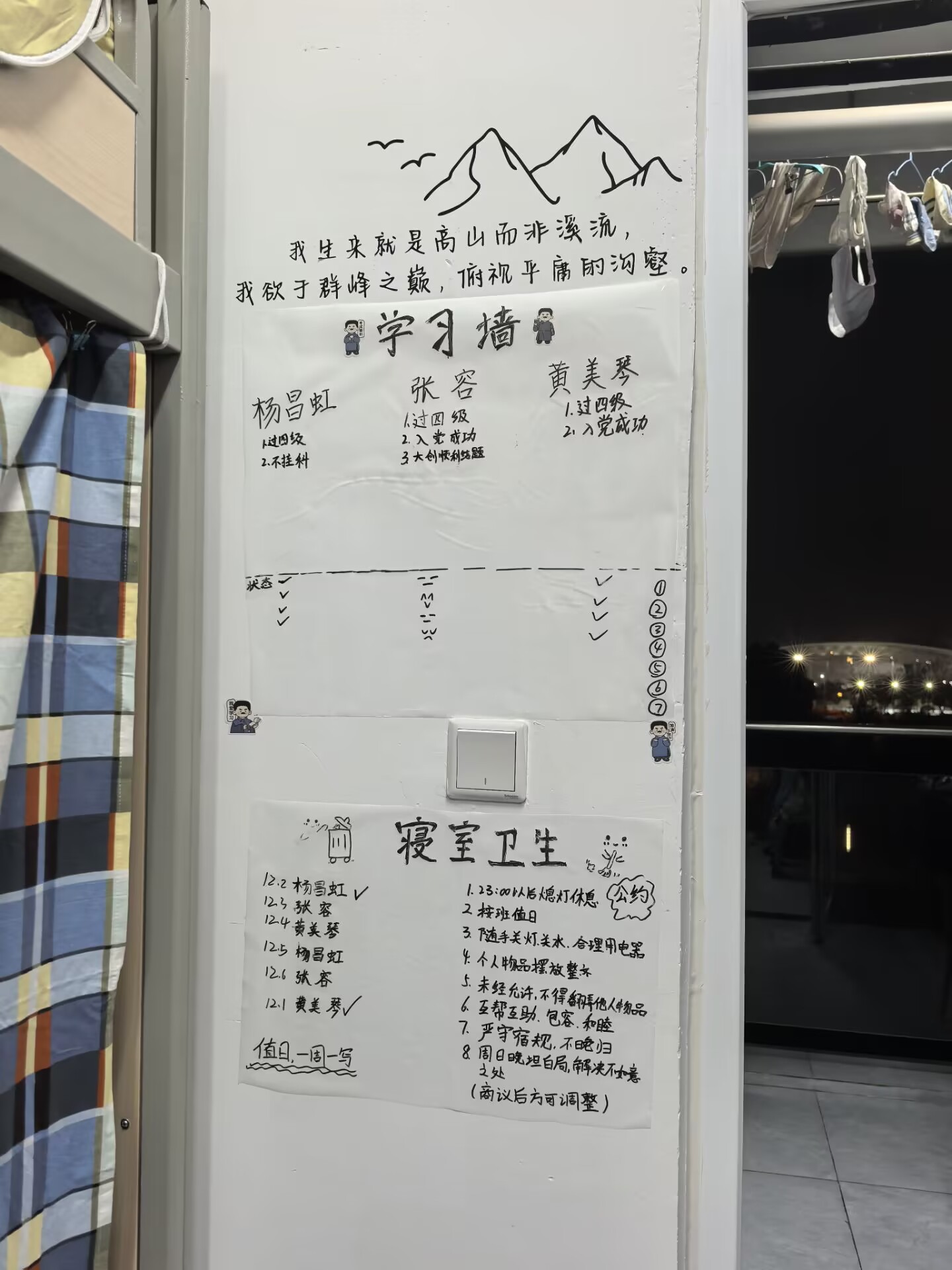 经过前期动员、班级初评和年级推优,学院于12月1日至5日组织评审小组深入寝室开展实地考评,并进行集中讲评。评审过程中,各寝室展现出良好的精神面貌与环境风采:室内洁净有序、物品摆放整齐,体现了同学们自觉自律的生活习惯;装饰美观温馨、风格各具巧思,展现了学子们的创造力与审美情趣;部分寝室还通过设置专业主题墙、励志标语、读书角等形式,营造出积极向上的文化氛围,初步形成了具有护理学科特色的育人微环境。这些成果的取得,是每一位同学共同劳动、齐心经营的生动写照,也为文明寝室长效建设打下了坚实基础。