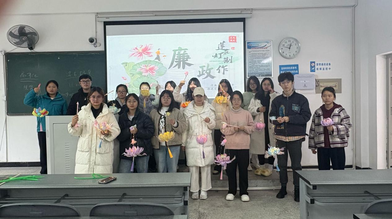 紧接着,“指尖生‘廉’花,灯映清风来”莲花灯创作活动于12月3日温情开展。活动巧妙借喻莲花“出淤泥而不染”的高洁品格,引导学生在动手制作中体悟清廉自守的精神。同学们精心缠绕、拼接,让一盏盏象征光明的莲花灯在指尖绽放。活动不仅要求完成手工作品,更鼓励学生提交超过200字的创作阐述,深入解读作品寓意,分享对廉洁的感悟。这一环节深化了思考,使外在的手工活动内化为一次深刻的价值认知与情感认同过程。