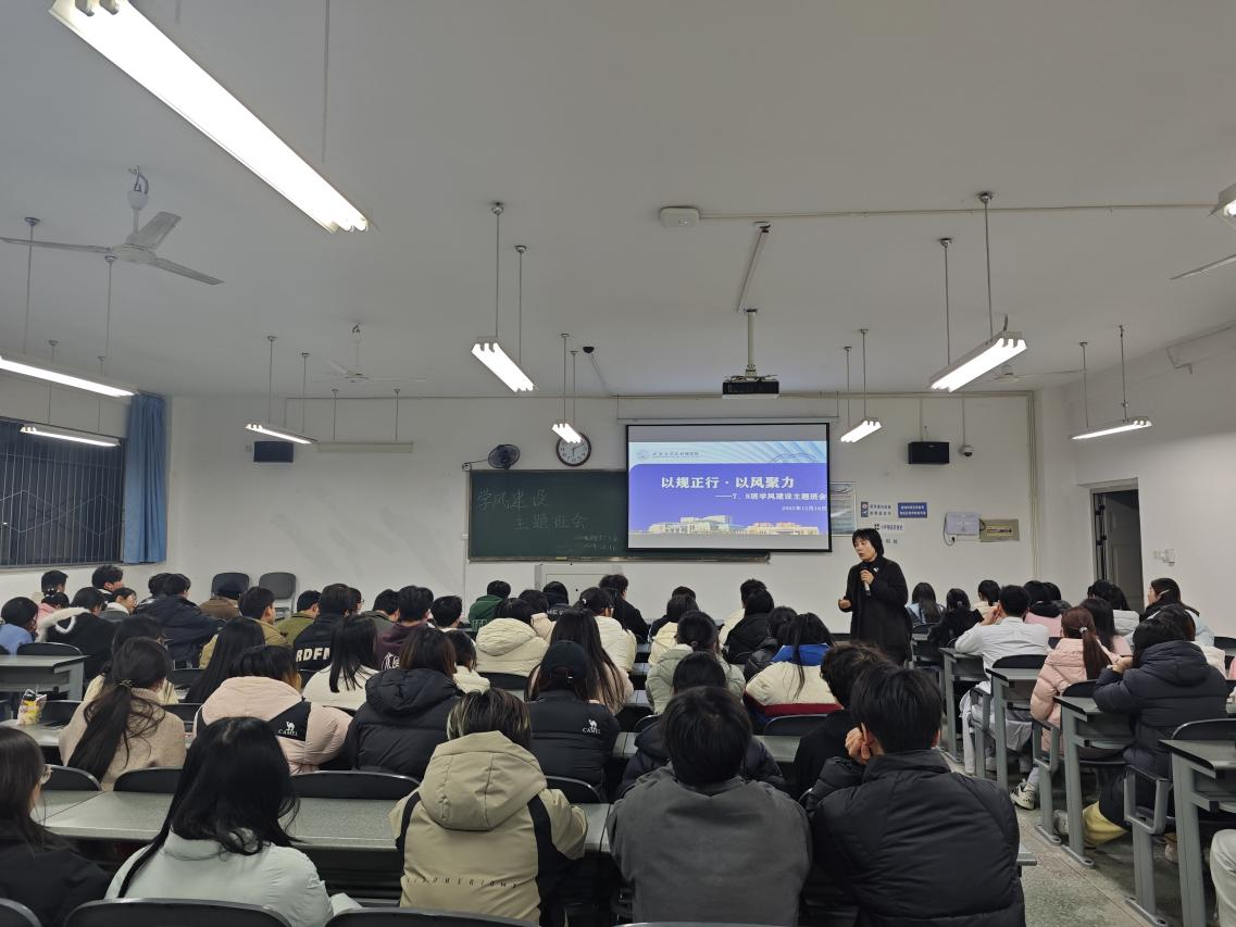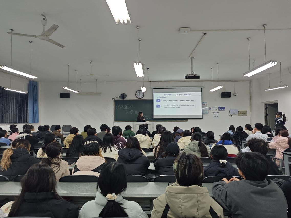 最后,王润娟副书记与黄燕科长分别作了总结讲话。她们对本次班会的筹备与开展成效给予高度肯定,同时结合学生成长与班级发展的实际需求,为学风建设指明方向。她们勉励全体同学要以此次班会为契机,将承诺转化为行动,严守纪律、互帮互助,在优良学风的滋养下共同成长、全面发展。