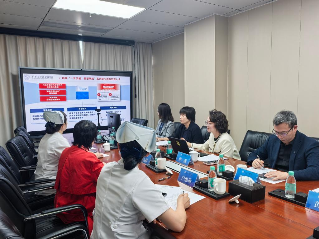 在北京大学深圳医院,双方围绕护理人才培养、实习基地建设与产学研合作等议题深入交流。曾兢介绍了学院发展特色与学生培养成效,表达了与医院建立深度合作的意愿。院方充分肯定学院办学成果,并详细介绍医院特色、教学体系与人才需求。双方就实习安排、师资互聘等达成初步合作意向,为共建教学实习基地奠定基础。交流期间,曾兢一行受邀参加医院院庆特别活动——“音为有您、祝您康复”病房小提琴演奏会,深切感受医院的人文关怀氛围。