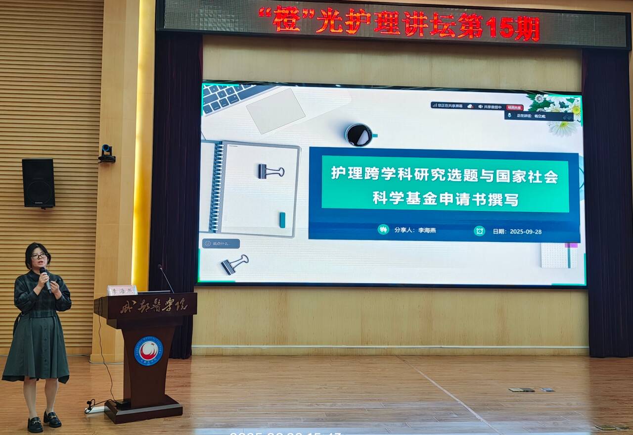 李海燕副教授以《护理跨学科研究选题与国家社会科学基金申请书撰写》为主题,结合自身成功申报国家社科基金项目的实践经验,从跨学科研究选题策略、申报书撰写技巧等方面进行了详尽阐释,为护理人员提升科研能力和申报质量提供了实用指导。