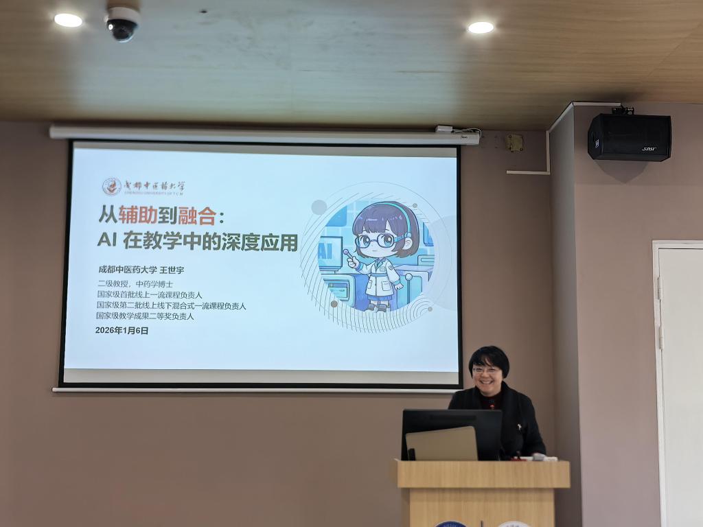 本次培训特邀成都中医药大学公共卫生学院院长王世宇教授、智慧树网高等教育研究院何琪阳研究员担任主讲嘉宾。王世宇教授以“从辅助到融合:AI在教学中的深度应用”为题,从宏观趋势切入,系统阐述了人工智能重塑教学模式的演进路径与理论框架。何琪阳研究员则以“‘数智赋能’AI驱动下智慧课程建设新形态”为题,从技术落地与课程建设角度,深入剖析了智慧课程建设的实施路径与创新机制。两位专家分别从理论建构与实践探索两个维度,为参训教师搭建了系统完整的智慧教学认知体系。