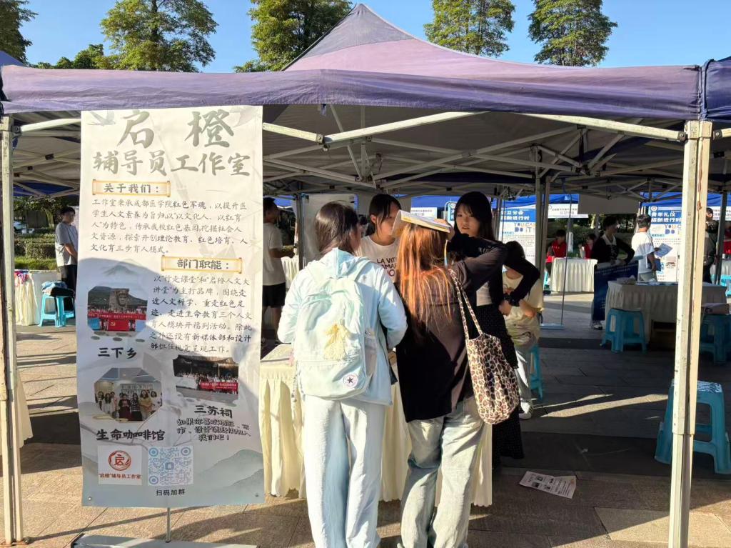 招新活动在校园内正式启动,蓝色展位前,宣传海报清晰展示了工作室的核心宗旨与部门职能。“启橙”辅导员工作室传承学校红色基因,聚焦医学生人文素养提升,品牌项目“行走课堂”与“启橙人文大讲堂”围绕人文科学、红色足迹与生命教育等内容展开。现场工作人员积极为新生介绍工作室特色活动与发展方向,解答各类疑问。不少同学表现出浓厚兴趣,主动了解并登记报名。
