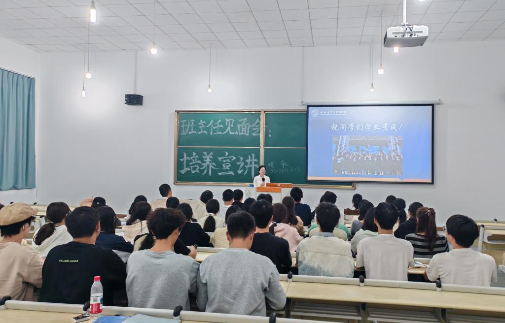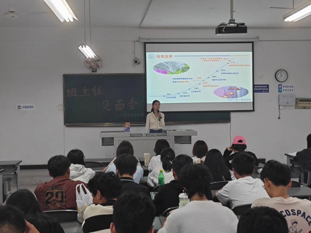 为帮助2025级新生尽快融入大学生活,近日,护理学院在各班教室顺利举办新生班主任见面会暨培养方案宣讲主题班会。班主任们走进班级,与新生面对面交流,开展专业思想教育,助力同学们平稳度过从中学生到大学生的关键转变。
