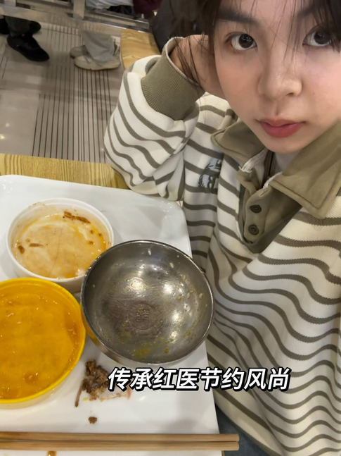 食堂打卡聚焦“光盘行动”与“健康生活”,“光盘打卡”中,学生餐后拍空餐盘,配“践行光盘,弘扬红医美德”文案上传;二楼 “红医健康角”由医药专业师生负责,提供含“合理膳食搭配”“四季养生食谱”的健康小贴士,学生领取后与印有关爱生命标语的背景板合影,志愿者还会解答饮食健康疑问。