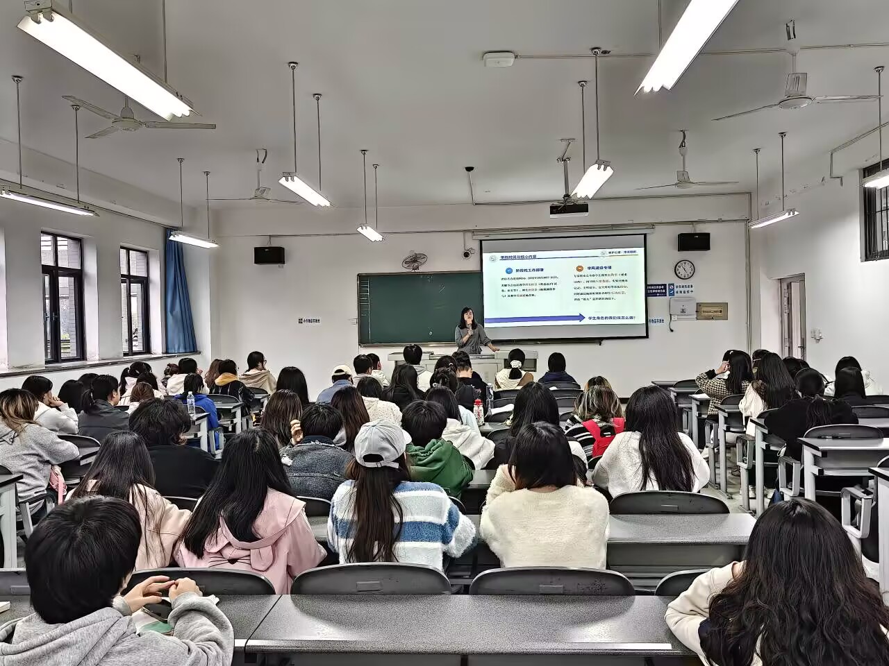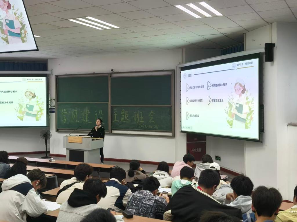 班会期间,各班辅导员深入一线,走进课堂,担任主讲与引导者。他们结合不同年级与专业特点,围绕学风建设的重要性进行了深入解读与动员,深刻阐述了优良学风作为大学精神与成长基石的重要性,号召同学们端正学习态度,明确学业规划,以昂扬的斗志投入学习生活中,将个人成长自觉融入学院与学校的发展大局之中。