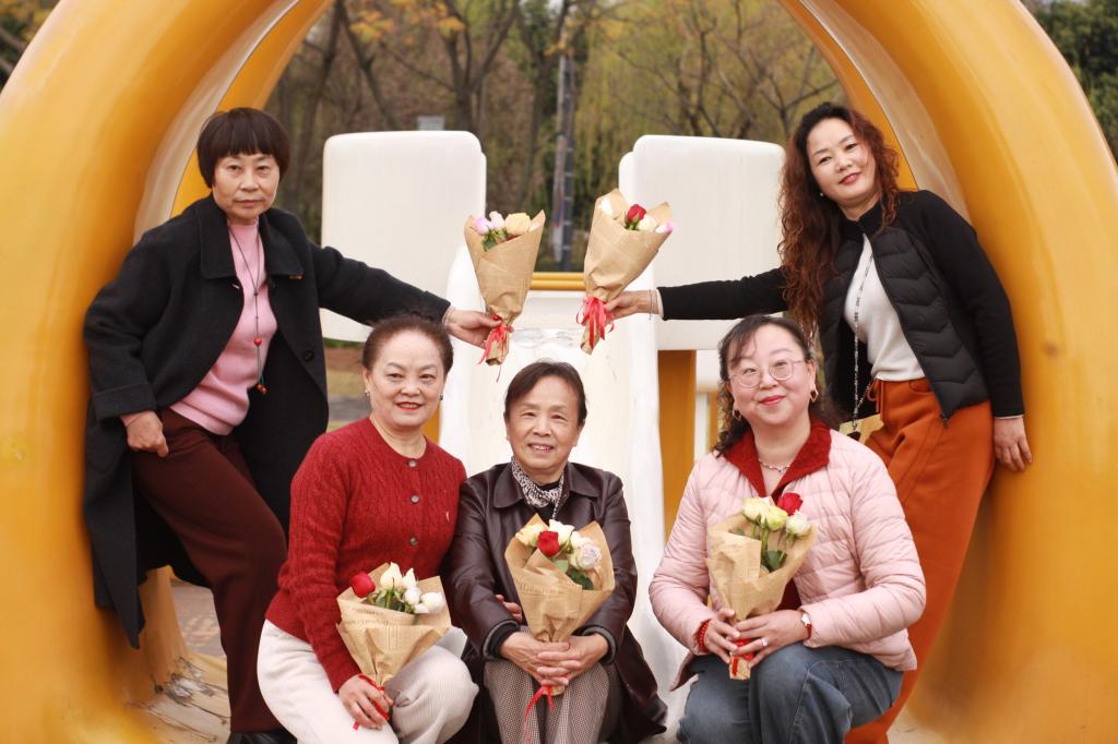志愿者们早早到达公园,提前摆放物品、调试相机,做好摄影相关准备工作,等待老人们慢慢到来。在社区工作人员的组织下,一群老年女性朋友陆续来到公园,志愿者和工作人员一起为每位老人送上精心准备的鲜花与温馨祝福,现场氛围格外暖人。此次公益摄影以“走近老人生活、捕捉自然瞬间”为核心,志愿者们全程贴身照料,耐心与老人们交流谈心,引导大家放松心情。摄影人员热情洋溢、精神饱满,尽力用专业技巧为老人们拍摄单人特写、手捧鲜花的唯美合影,抓拍老人在春日美景中的自然瞬间,又为大家拍摄了集体大合照,用镜头定格下老年女性朋友的夕阳风采与节日喜悦。