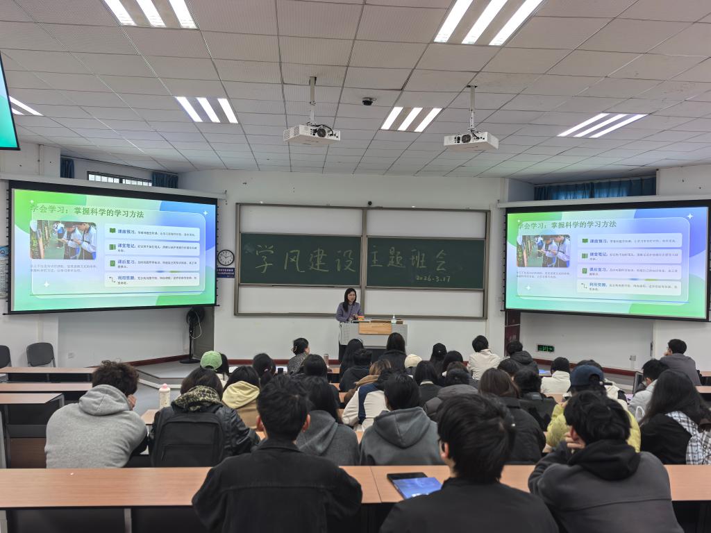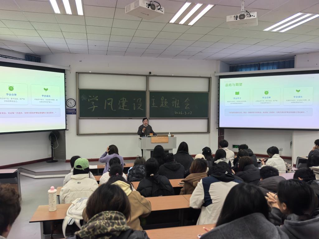 班主任陈小菊、张泽华两位老师以《学会学习、学会自律、学会成长》为题讲授主题班课。她们指出,大学之学在于“会学”,要敢于质疑与跨界;自律是拒绝短期诱惑、坚守长期目标的品质;成长则是不断突破舒适区的过程。她们寄语同学们“用自律规划人生,用学习应对变化,让成长成为一种习惯”。
