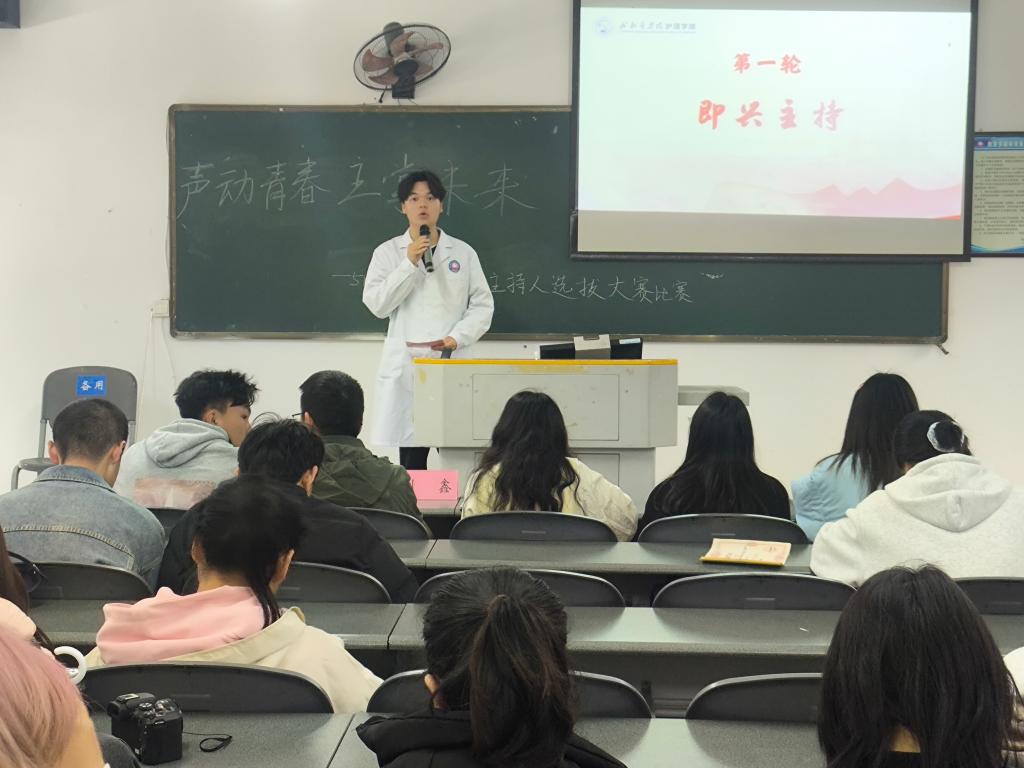 为进一步全面提升学生的语言表达与临场应变能力,为热爱主持的同学搭建追逐梦想的专业平台,2026年3月20日中午,护理学院“声动青春,主持未来”主持人大赛决赛于博学楼B111圆满举行。