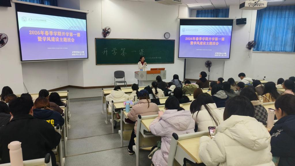 围绕不同年级学生的成长需求,各年级班主任、辅导员纷纷走进班级,开展了形式多样的主题班会。2025级以“启航·习惯养成”为主线,重点强调课堂纪律,倡导“不迟到、不早退、不做手机控”的文明课堂规范,并结合文明礼仪教育,引导学生尊师重道、言行得体,养成良好学习习惯。2024级聚焦“精进·能力提升”,通过分析学业成绩、分享竞赛经验,鼓励学生深耕专业、拓宽视野。同时结合文明宿舍建设要求,引导同学们在宿舍内互帮互助、共同进步,让宿舍成为学风建设的重要阵地。2023级围绕“领航·规划未来”主题,邀请优秀学长学姐和专业教师开展考研与就业指导,帮助学生明晰发展方向。班会特别强调高年级学生的榜样作用,要求他们在课堂纪律、宿舍文明、言行礼仪等方面做好表率。